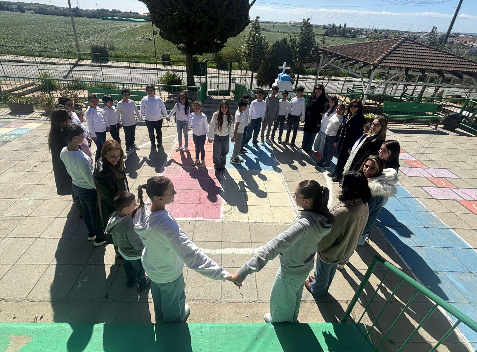 Στο πλακόστρωτο του Σχολείου, φορώντας το τζιν παντελόνι μας και κρατώντας όλοι χέρι - χέρι, σχηματίσαμε μια καρδιά , στέλνοντας ένα μήνυμα ενότητας και συμπερίληψης!