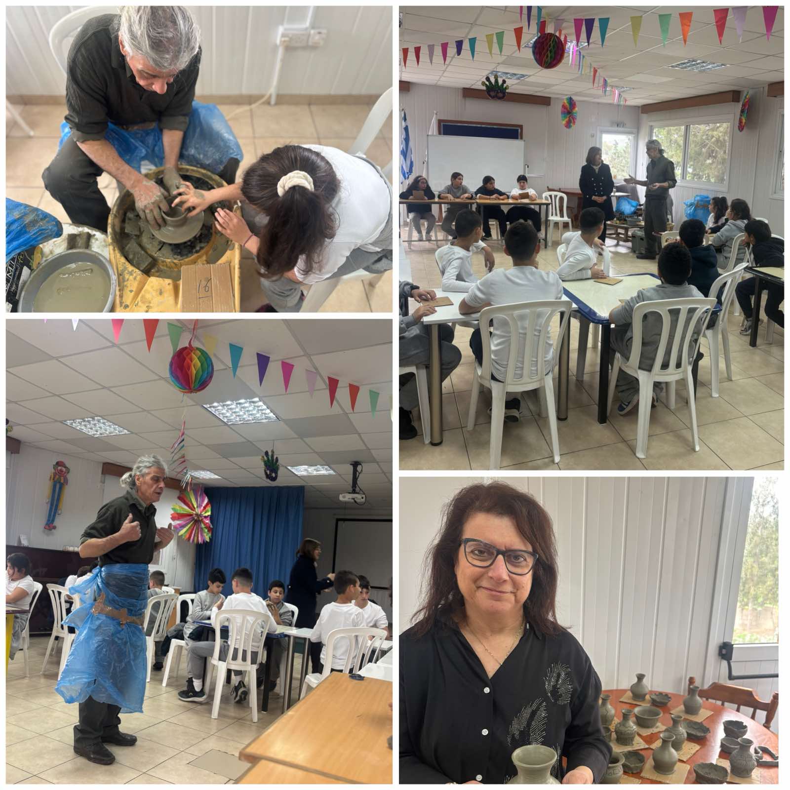 Την Παρασκευή 13 Φεβρουαρίου είχαμε την ευκαιρία να φιλοξενήσουμε στο σχολείο μας τον αγγειοπλάστη κ. Μιχάλη Μιχαήλ . Μοιράστηκε μαζί μας τα μυστικά της αγγειοπλαστικής και φτιάξαμε τα δικά μας αγγεία. Τα παιδιά έπιασαν στα χέρια τους πηλό, τον έπλασαν και τον διακόσμησαν. Μετά, χρησιμοποίησαν τον τροχό του κ. Μιχάλη και έπλασαν το δικό τους βαζάκι. Ήταν μια ξεχωριστή εμπειρία!! Τις θερμές ευχαριστίες μας στον αγγειοπλάστη μας!