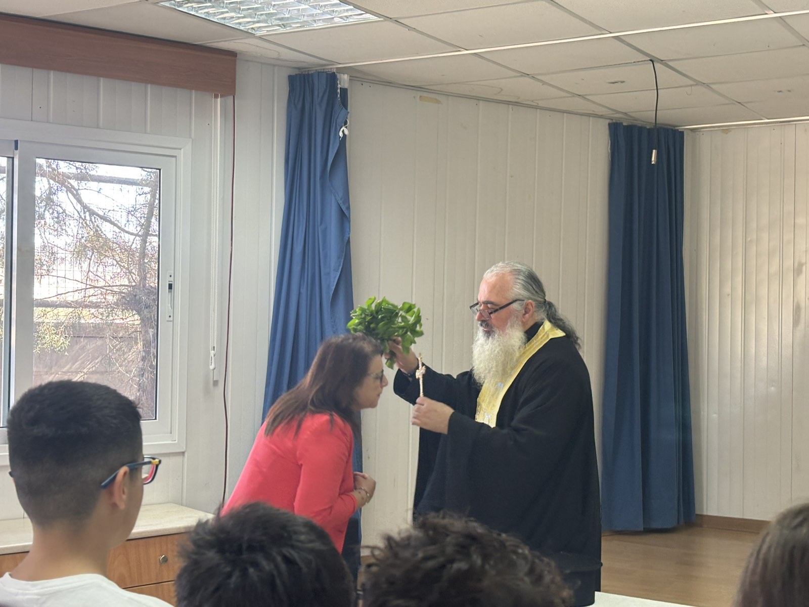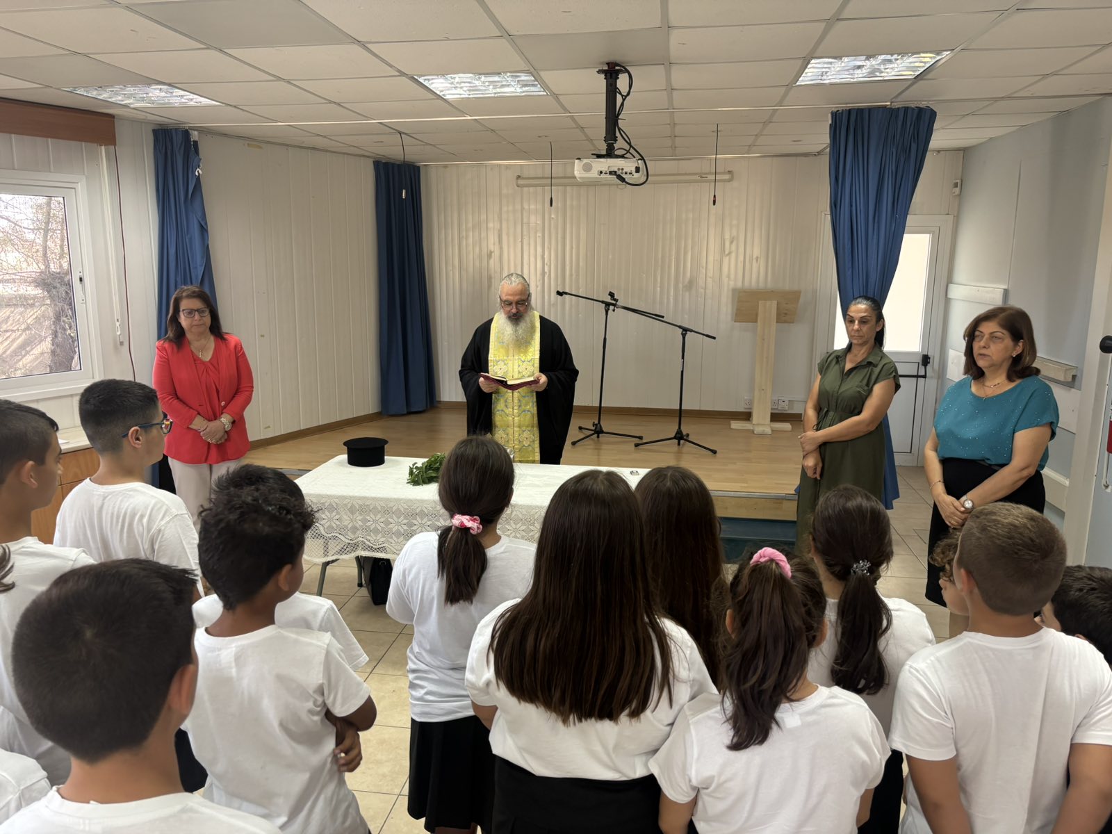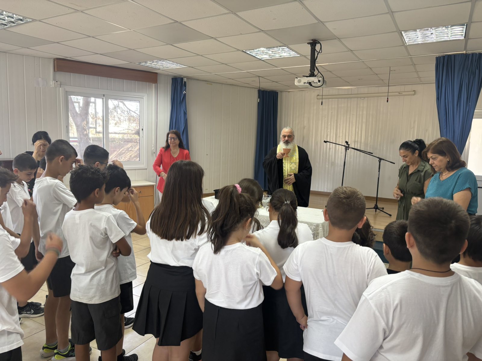 Την Παρασκευή 12/9/2025, ο π. Ανδρέας, εφημέριος της εκκλησίας του Αγίου Αντωνίου στα Κελλιά, επισκέφθηκε το Σχολείο μας για τον καθιερωμένο αγιασμό.