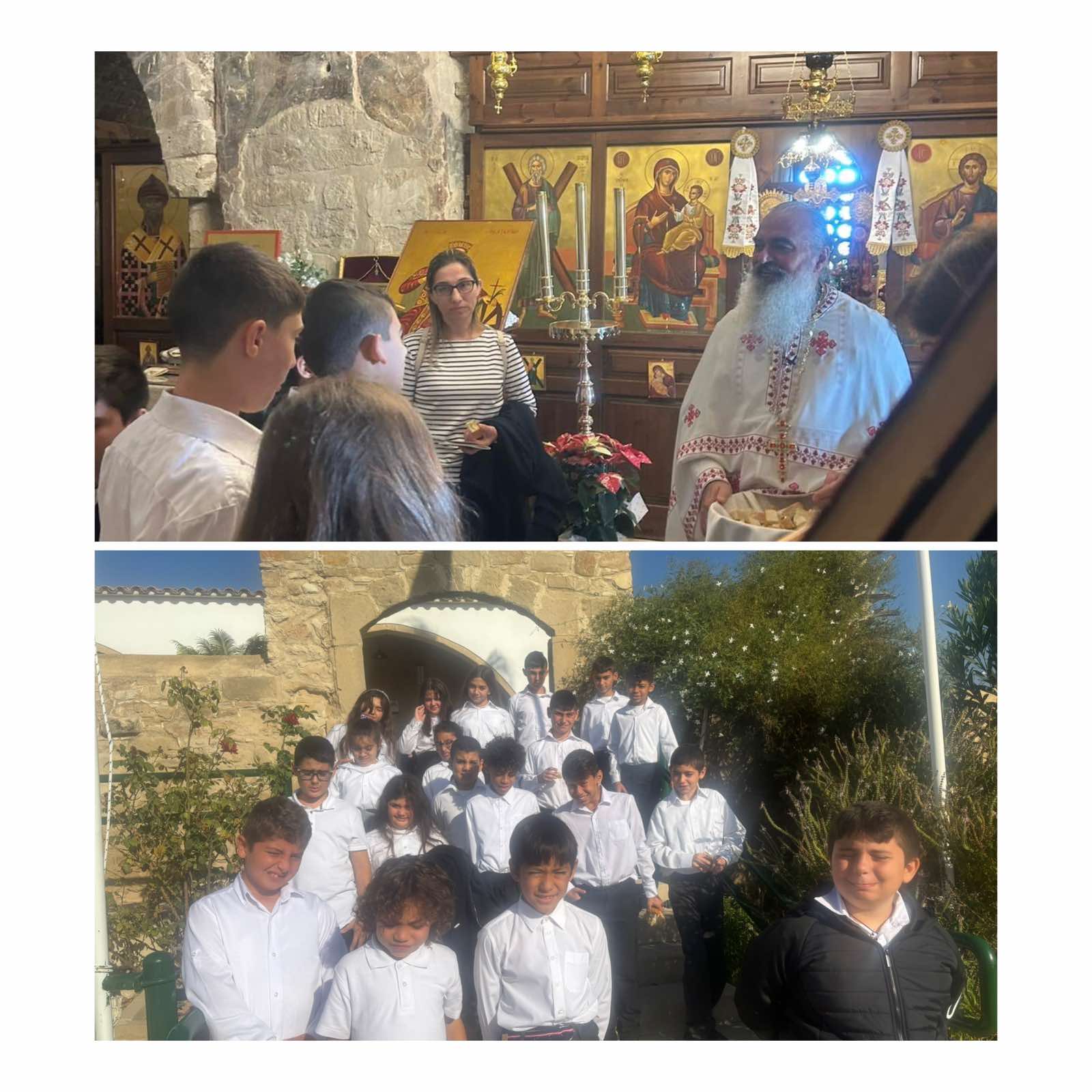 Τα παιδιά του σχολείου μας εκκλησιάστηκαν στην Εκκλησία του Αγίου Αντωνίου στα Κελλιά και ευχήθηκαν στον αγάπημενο μας πάτερ Ανδρέα για την ονομαστική εορτή του στις 30/11/25.