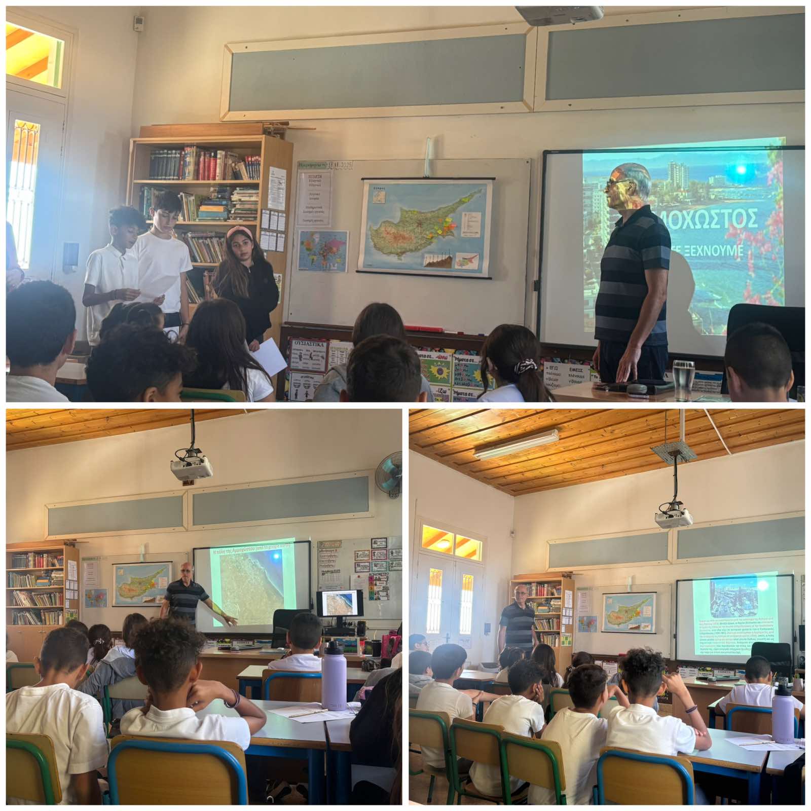Την Τετάρτη ήρθε στο σχολείο μας ο αφυπηρετήσαντας δάσκαλος κ. Χαράλαμπος Λουκά με καταγωγή από την Αμμόχωστο. Μίλησε στα παιδιά, έδειξε εικόνες και μικρά βιντεάκια για την μαγική πόλη της Αμμοχώστου. Τον ευχαριστούμε θερμά!
